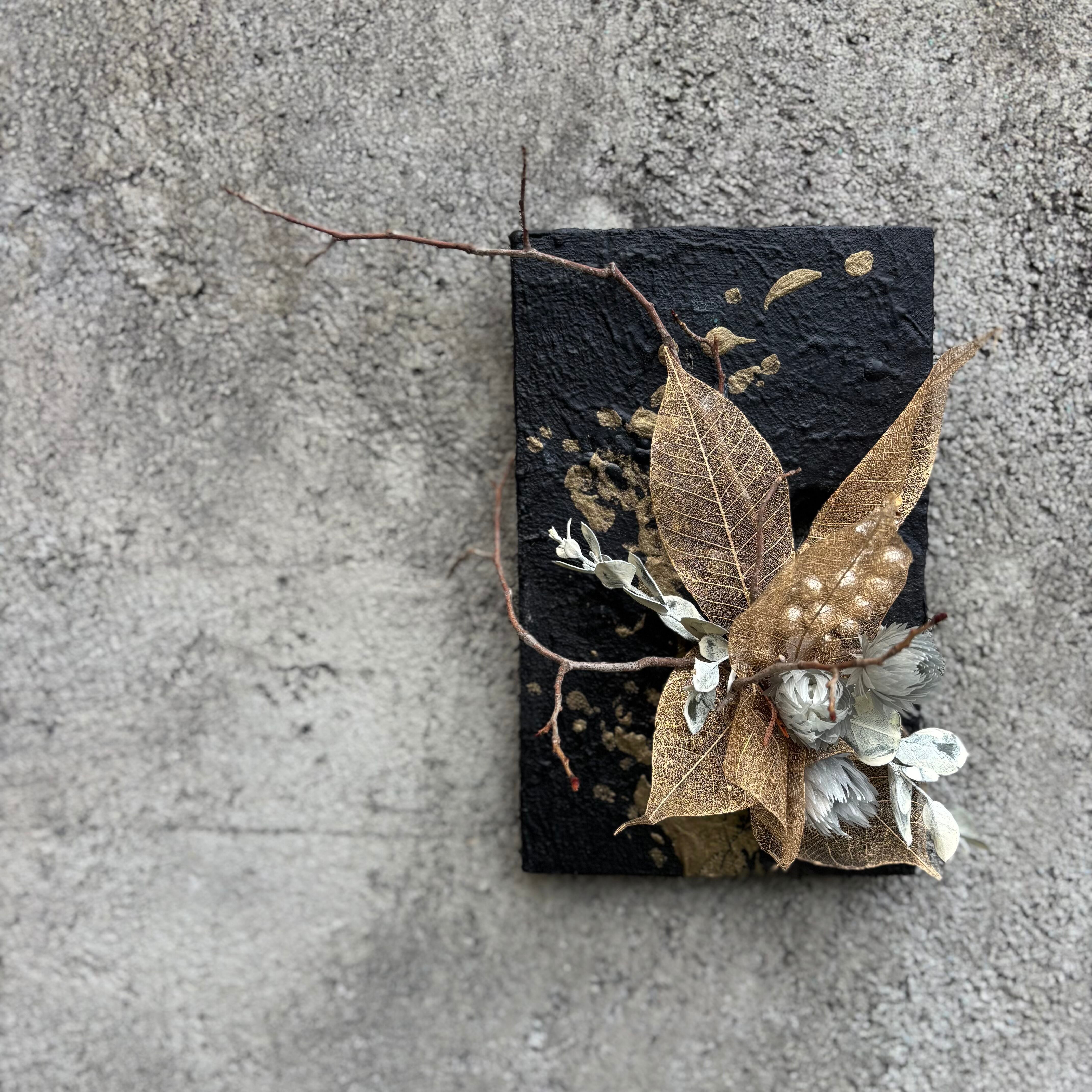 ドライフラワーやプリザーブドフラワーをあしらった作品で壁掛けたり、壁に穴をあけるのが難しい方は棚などに飾り楽しんでいただけます。