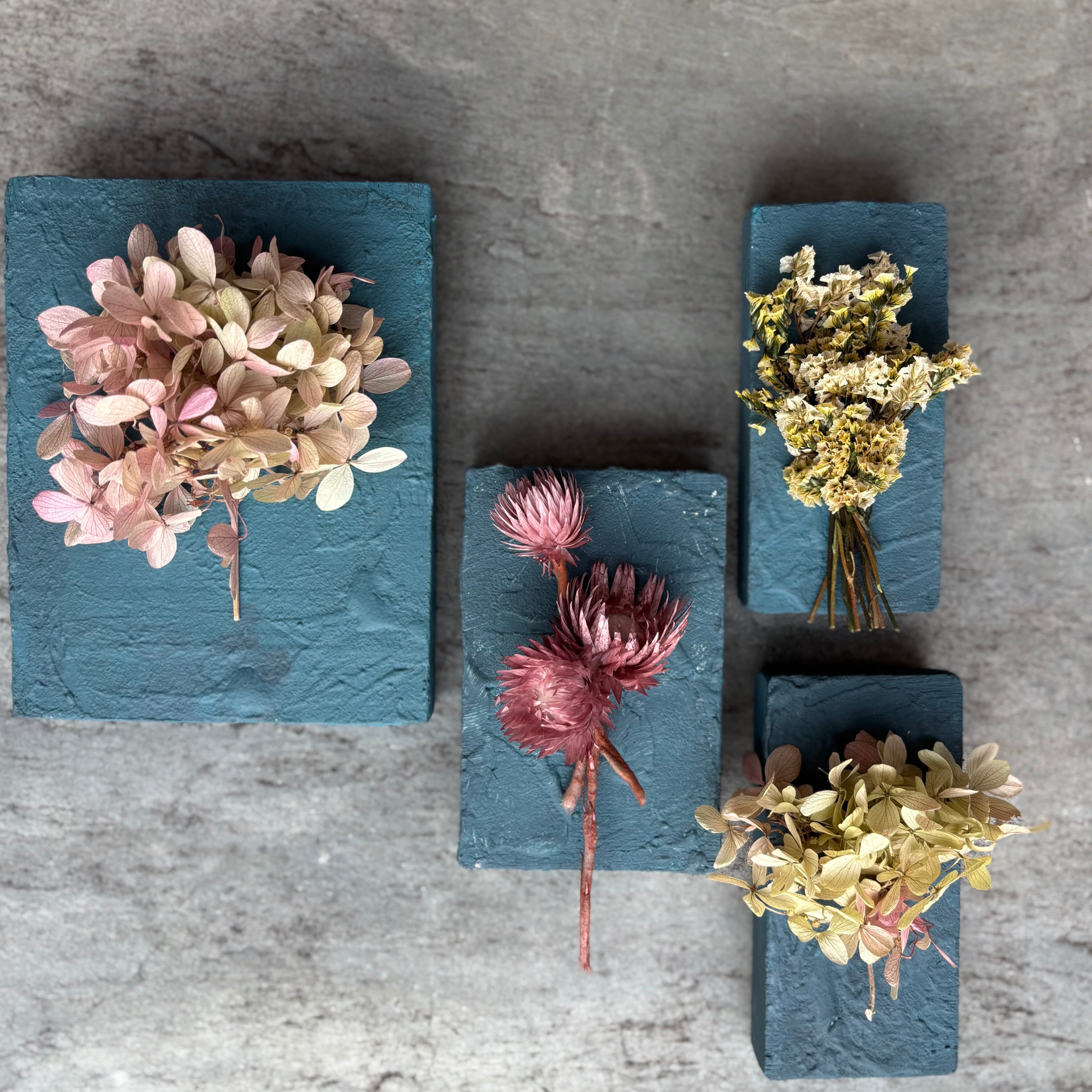 ドライフラワーやプリザーブドフラワーをあしらった作品で壁掛けたり、壁に穴をあけるのが難しい方は棚などに飾り楽しんでいただけます。